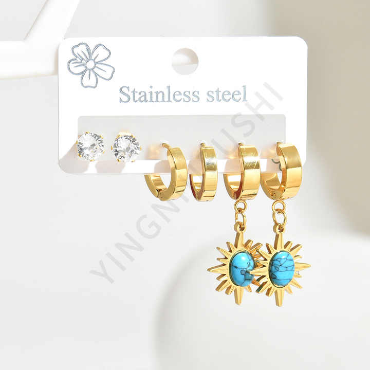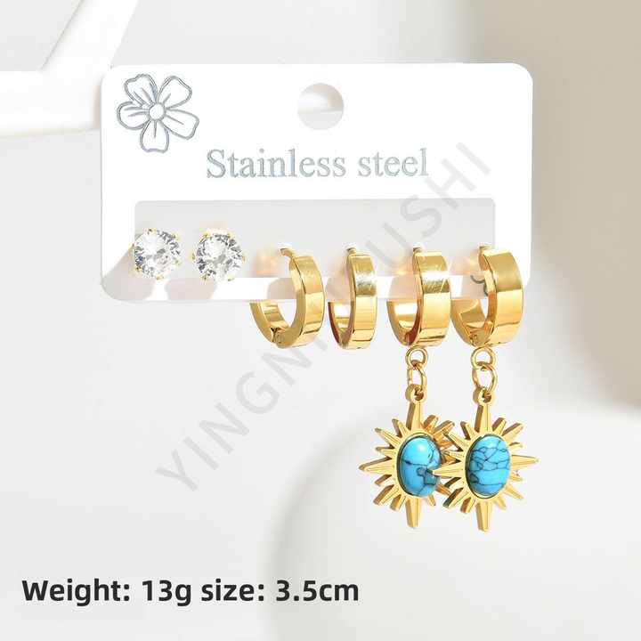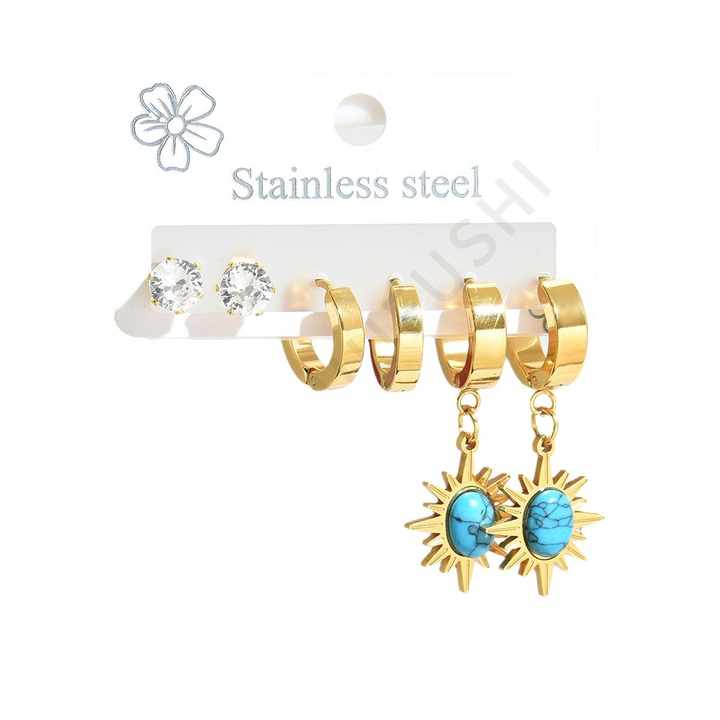 • Includes: 3 distinct gold earrings (mini hoop, stud, and midi huggie)