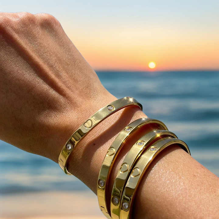Channel timeless elegance with our Luxe Lock bracelet — a Cartier-inspired classic designed for everyday opulence. Crafted from high-quality stainless steel and finished in rich, anti-tarnish 18k gold plating, this iconic bangle style bracelet radiates understated luxury.
